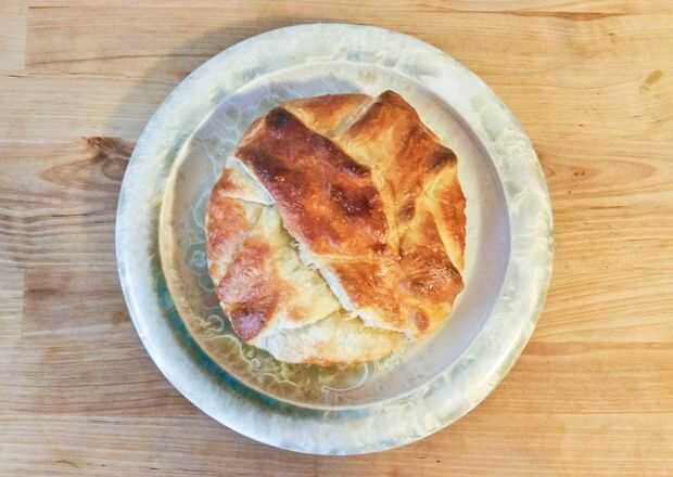 Cepille la parte superior de la masa de hojaldre con huevo y pop la bandeja para hornear en un horno de 425 grados F por 20 minutos o hasta que la parte superior se dore bien y se escucha el chisporroteo del queso.