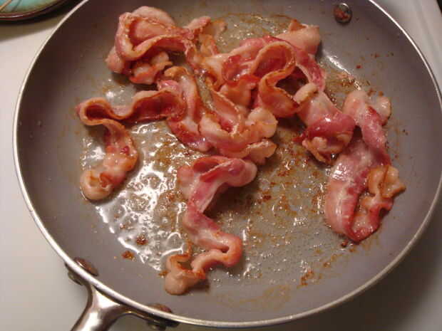 Freír el tocino a fuego medio hasta que realmente crujiente. La rebanada de tocino todo no ser 100% crujientes a menos que se quema, así que asegúrese de que está realmente bien hechos.