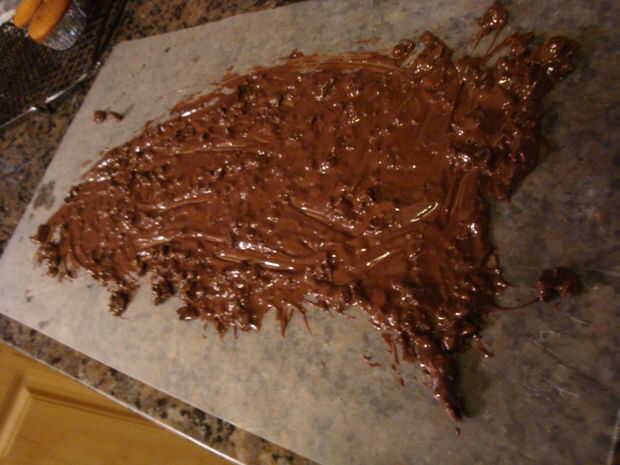 Conseguir algunos papel encerado o papel de aluminio y Esparza la mezcla de Chocolate tocino todo el papel de cera. Retirada por el momento y dejar en la nevera.