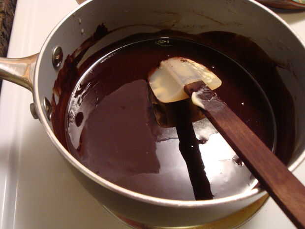 Derrita la mantequilla en una olla pesada a fuego moderadamente bajo, luego bate/stir en cacao en polvo.