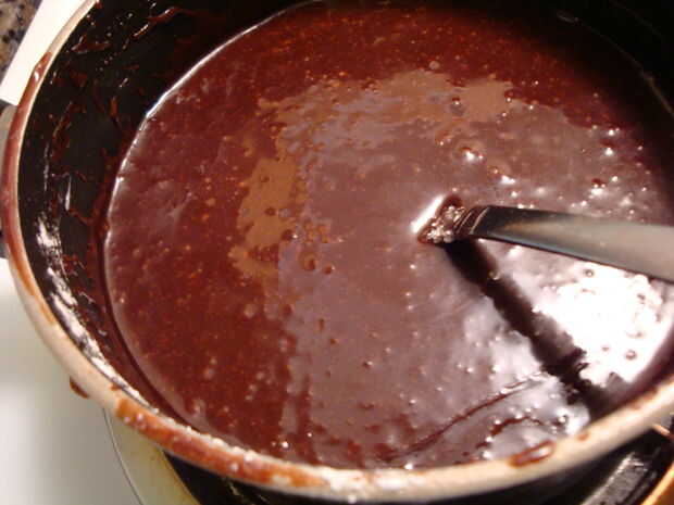 Derretir la manteca en una cacerola pesada, agregue el cacao.