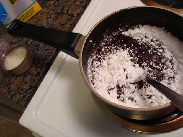 Este glaseado se desarrollará una 'costra' si se quiere en la parte superior si no se cubre. Pero no importa porque solo puede mezclarlo todos juntos otra vez.