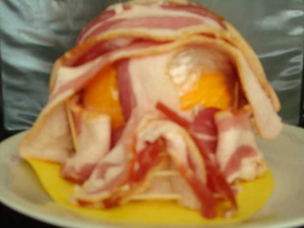 Esta especie de redefine el término "tocino y huevos para el desayuno". Cada muffin huevo es envuelta con un trozo de tocino y cocido al horno en latas del mollete. Esto hace un desayuno perfecto para cualquier día.Ver variaciones sobre esta rec