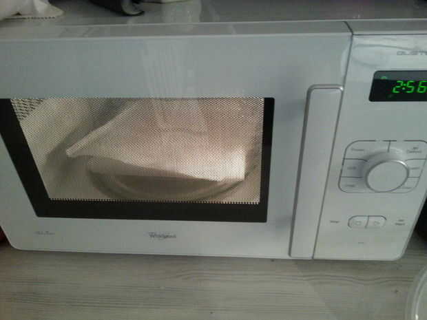 colocar la placa en el horno de microondas y cocinar en máximo de 1-1.5 minutos por pedazo de panceta