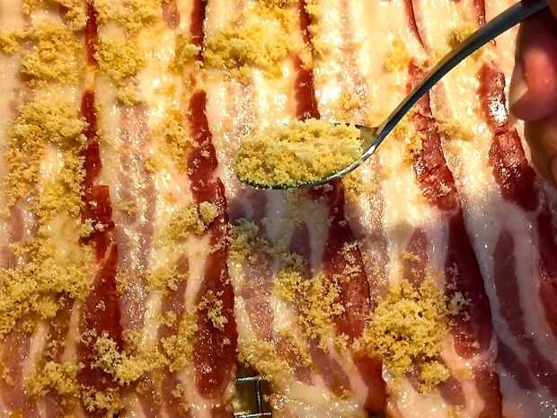 Mismo que anteriormente... Coloque las rebanadas de tocino al lado en el enfriamiento, sin dejar de tocino superpuestas.