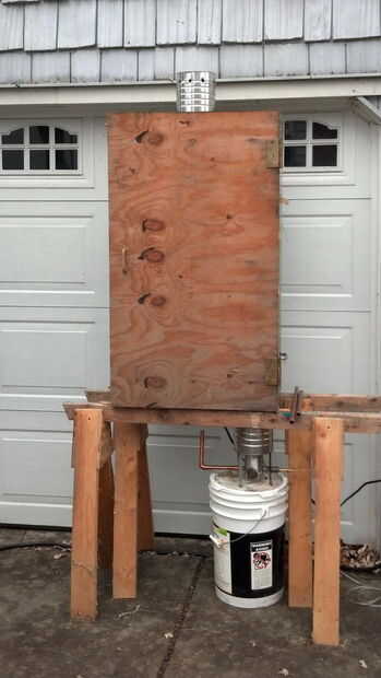 Hace unos años, cuando hice mi lote de puño de Speck, encontré el metal en la imagen. Agregué una puerta, cortar 2 orificios en la parte superior e inferior y tenía mi caja de humo! Debajo puede Ve el generador de humo y en la superior una chimenea un poco para evitar que la lluvia o la nieve entren el ahumador.