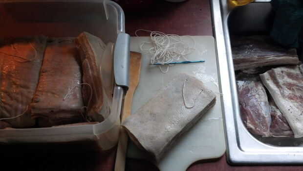 Antes de empezar a fumar aunque, se supone que la caída de carne y seco para la construcción de una 'película', que es una capa pegajosa pegajosa que se forma en el exterior de la carne. Es obviamente esencial para fumar correcta.