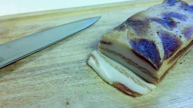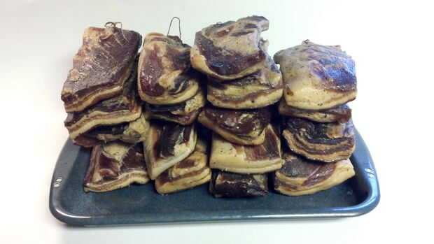 Bacon correcto es nada para los impacientes! No se realizan Westfäler Schinken, Speck tirolés o Prosciutto en 1 día y mi Mota es ni. El generador de humo funciona durante unas 2 horas sin cuidar. Podrá comenzar el fumador de 2 - 3 veces al día. No hay problema si no te a él; la carne necesita tiempo para agua maduro y además perdiendo cobertura. El tiempo frío, fumar y curado mantendrá la carne eche a perder! Después de 6 a 8 semanas se hará el tocino. Para revisar el progreso puede cortar una rodaja de vez en cuando y probar el punto de cocción. Ser frito o, como debe ser, finamente rebanada con pan oscuro, rábano rallado fresco y salmueras, es verdaderamente delicioso.