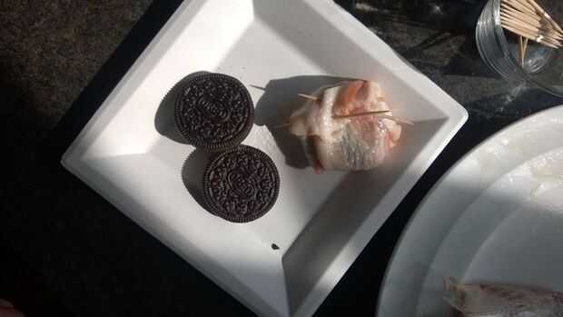 Para sostener el tocino alrededor de Oreo simplemente usar palillo de dientes. Será útil cuando se utiliza la freidora.