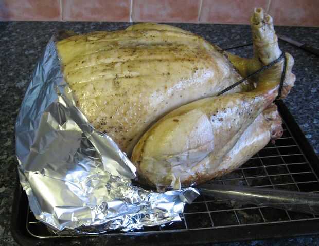 Pero no dejes a la suerte - siempre use un termómetro de carne! El pecho debe alcanzar una temperatura interna de 76C (170F) y el muslo debe alcanzar una temperatura interna de 80C (180F).