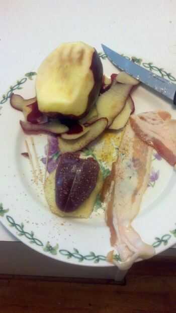 Espolvorear el condimento sobre la mama y la manzana (yo condimento criollo de Tony Chachere pero puede utilizarse cualquier condimento sin sal. Usar lo que tienes o lo que te gusta!)