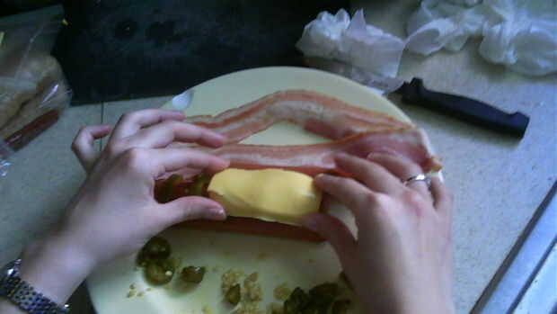 Tocino envuelto Chile Jalapeño Cheddar perros (3 / 6 paso)