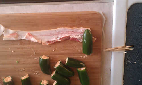 Tan en Texas amamos en barbacoa, fiestas, eventos etc.Paso 1: Ingredientes y equipo1 paquete de tocinoAproximadamente 12 medianas jalapeños1 paquete de queso cremacuchara decuchilloCorte de lámina perimétricaGuantes desechables muy importante!Par de