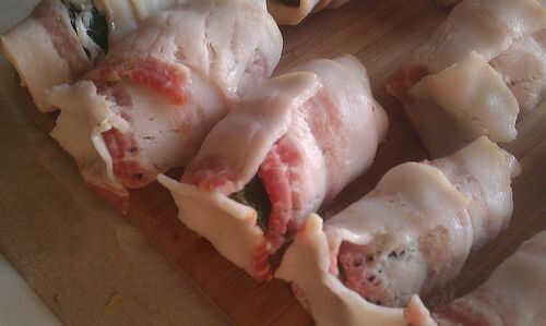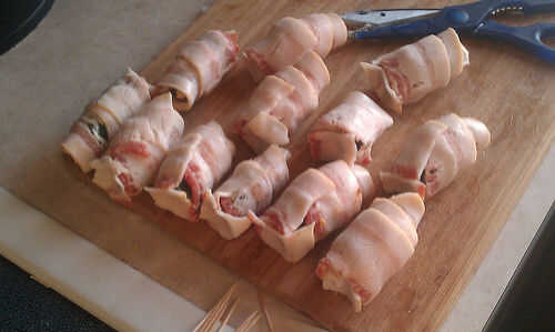 tocino envuelto relleno porkchopsPaso 1: Preparar el porkchops Empezar por cortar su porkchop por lo que puede doblar por la mitad y rellenar.Paso 2: relleno Vierta una buena cantidad de relleno en el porkchop y cierre para arriba!Paso 3: tocino! Sig