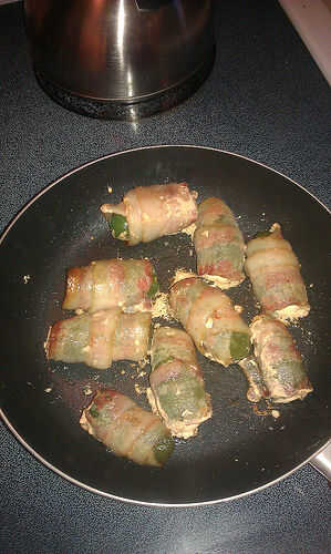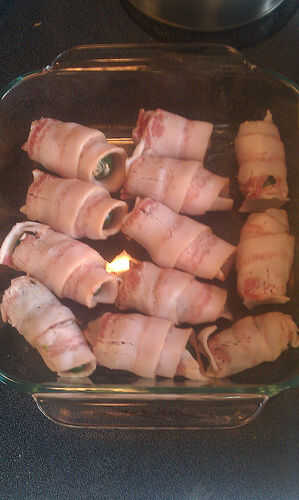 Tan en Texas amamos en barbacoa, fiestas, eventos etc.Paso 1: Ingredientes y equipo1 paquete de tocinoAproximadamente 12 medianas jalapeños1 paquete de queso cremacuchara decuchilloCorte de lámina perimétricaGuantes desechables muy importante!Par de