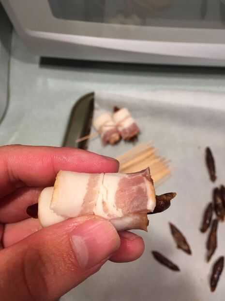 este año tuvimos una cosecha de albaricoques. Hemos tenido unos pocos en mi árbol así que decidí experimentar con ellos. Hice albaricoques asados y envueltos en tocino y queso. Mi esposo había amado. Pensé que eran bastante buenas yo mismo.Paso