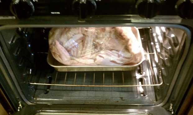 Nota: Debido a que utilizó una tonelada de tocino va a conseguir un montón de grasa de tocino. No se preocupó cuando lo ves llenar la bolsa a medio camino para arriba. Cuchara el café de gran vacío (metal) puede al abrir el horno para sacar los pájaros y hágale un agujero en la bolsa en el lado para que todos la grasa drene. Si usted compra una bolsa de Turquía de buena marca que sostienen a la grasa caliente y no pop. También si recordaba a empujar los agujeros en la parte superior de la bolsa esto no sucederá.