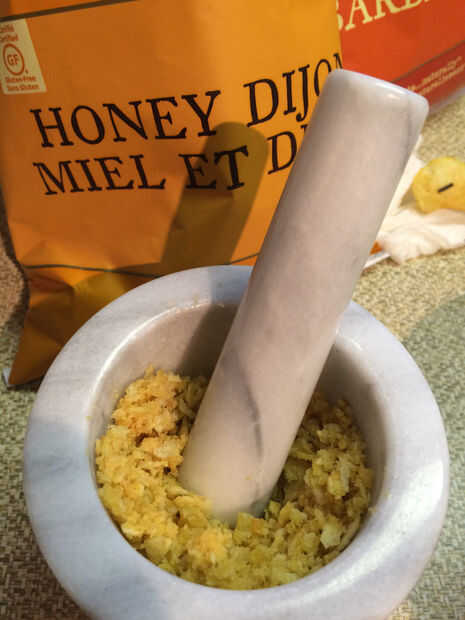 Machacar las patatas fritas por lo que tiene alrededor de 1 taza