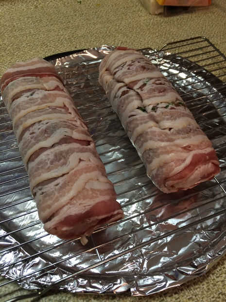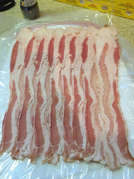 1 - colocar tocino todos un poco sobre el chapaleteo en un pedazo de envoltura se aferran.