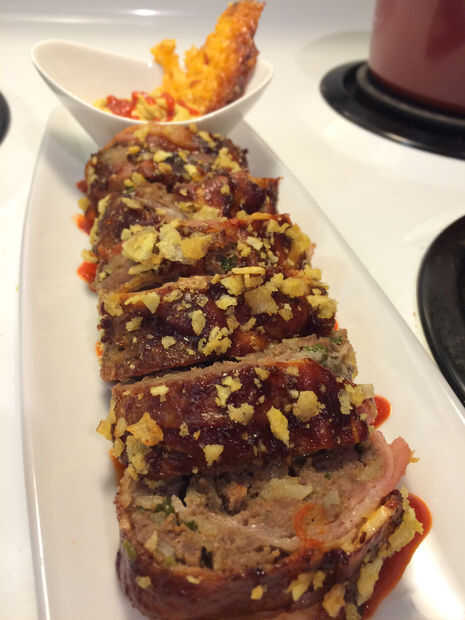 esto es 100% comida de puro ataque al corazón en su mejor momentoPaso 1: Lo que se necesita 1 cebolla grandemontón de bacon (yo usé tocino de pavo)3 tazas de migas de pan (o pan tostado si tienes un procesador de alimentos.)3/4 taza de harina1/3 taza