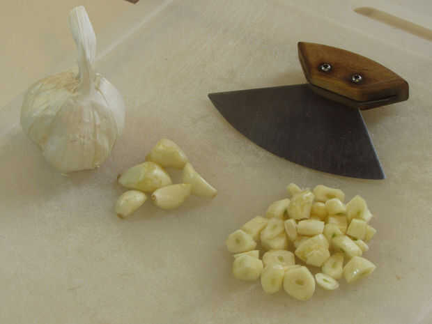2. pelar y picar 2 cabezas de ajo en trozos de tamaño de descenso.