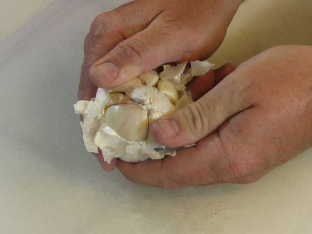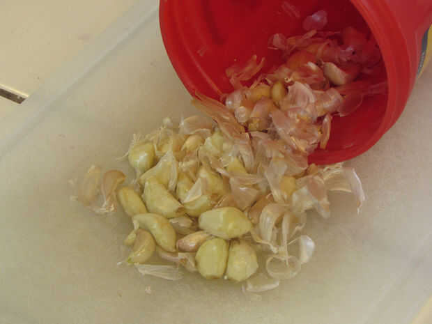 1. quitar las capas externas de la piel y romper el ajo en dientes individuales.