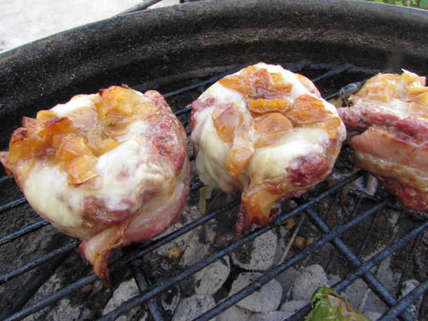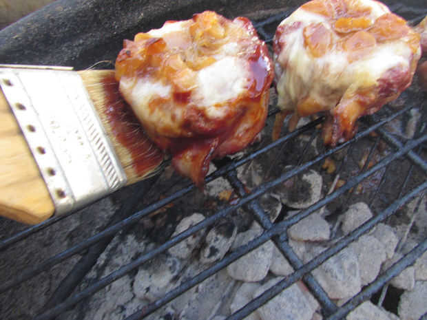 1. al colocar el rodillo en parrilla, no lo coloque directamente sobre el carbón. Por el relleno, usted no podrá mover de un tirón sus rollos mientras se cocina. Conjunto rodillos a lo largo de la parte exterior de sus brasas y parrilla lentamente hasta que su carne de la hamburguesa y el tocino estén completamente cocidos.