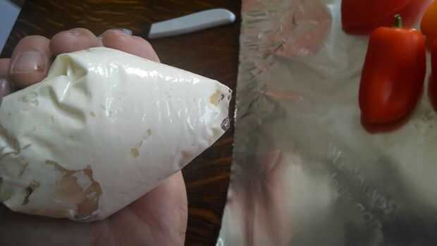 El primer paso es ablandar el queso crema en el microondas. Lo hice durante 30 segundos. Fue suficiente para ablandarla pero no era caliente.