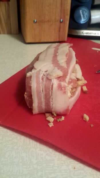 Tocino envuelto relleno Porkchops (3 / 5 paso)