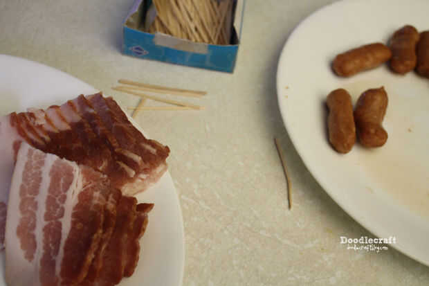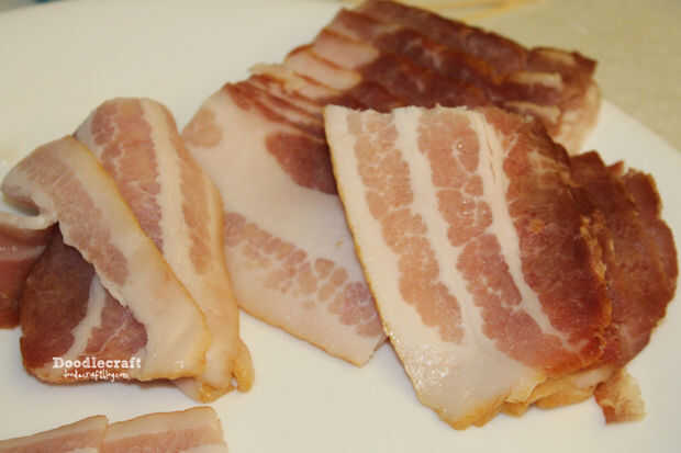 Cortar el tocino en tiras de 4 pulgadas con tijeras.