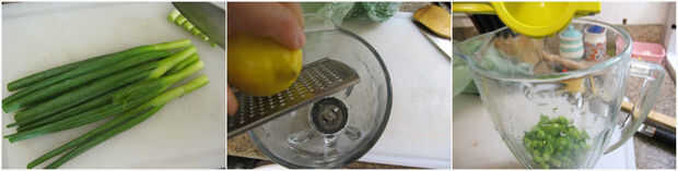 Utilizar sólo la parte verde de la cebolla verde y cortarlos en trozos pequeños.
