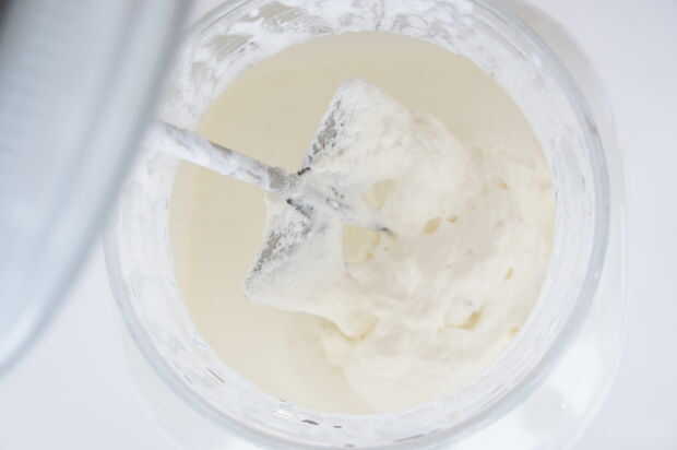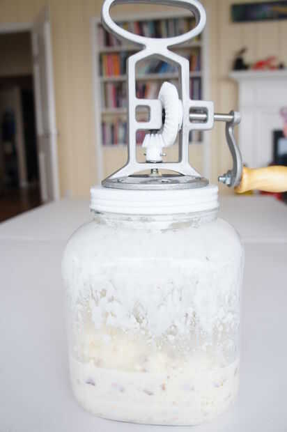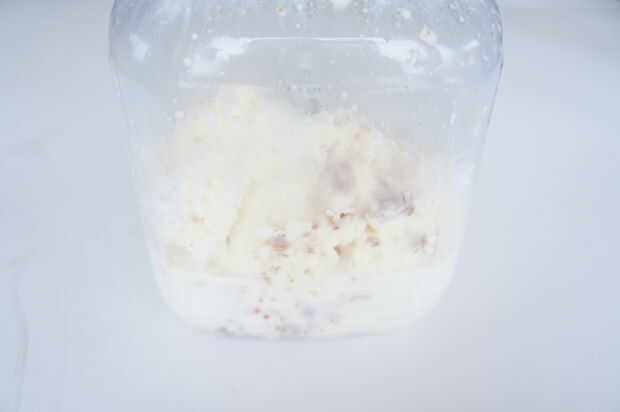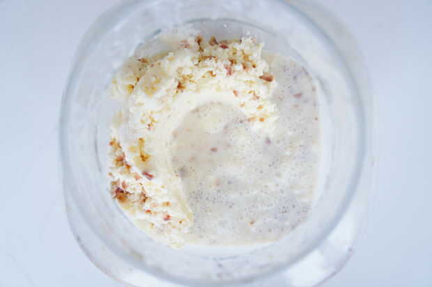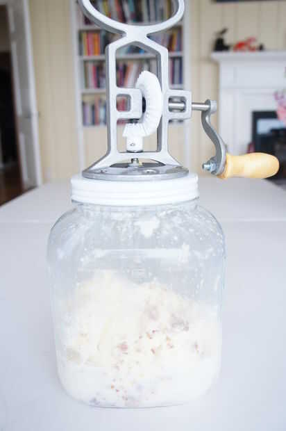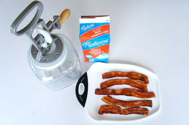 Que la crema se siente a unas horas o toda la noche para madurar. Esto le dará a su manteca de tocino un agradable sabor amargo. Precalentar el horno y cocer el tocino. Cortar el tocino en mordedura de pequeño tamaño. Añadir la crema y tocino a la churner mantequilla. También puede usar un tarro de masón o procesador de alimentos. Gire la manivela en el churner y continuar a batir hasta que la mantequilla se separa y ves un líquido claro.