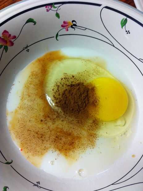 Preparar su torrija - mezclar los huevos, la canela, la vainilla y la leche en un cazo.