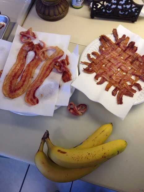 primero y principal, quiero disculpas por las fotos. A pesar de intentar limpiar la lente de mi cámara generalmente salieran media borrosa.Bacon. Elemento número uno de la tabla periódica de impresionante. Es un alimento típico y delicioso que mejora