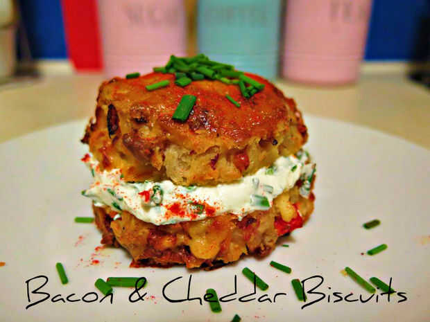 Uno de mis alimentos favoritos verano tiempo de infancia fue scones. Algo similar a la galleta americana pero exclusivamente comida con elementos dulces como mermelada. Sin embargo nunca realmente tenía mucho de un diente dulce y tener a más suave en mermelada y la crema era incluso menos atractivo. Un avance rápido hasta la edad adulta temprana y he decidido cambiar el scone humilde por algo más acorde con mis papilas gustativas. Este Scone se ha hecho con excesiva porciones de tocino, queso Cheddar maduro, pimientos y el sabor de lado ardiente de pimienta negra. Para decorar estos bollos he optado por utilizar la mezcla de crema agria y cebollino como un guiño a los bollos tradicionales usados en crema coaguladas.