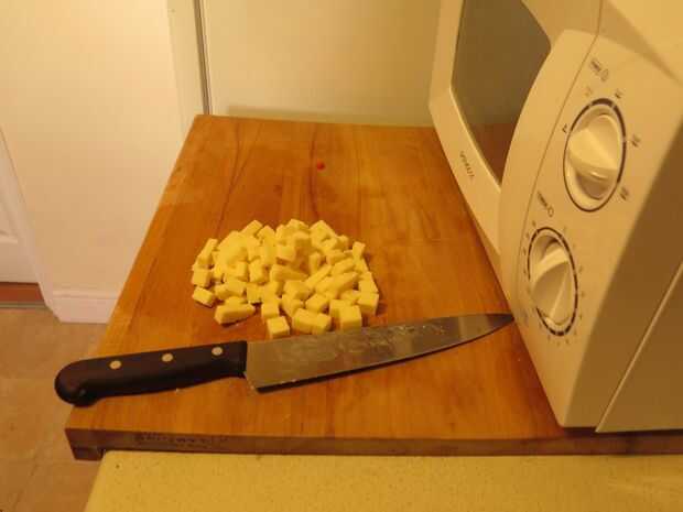 200g de queso Cheddar fuerte (más o menos elevado al cubo)