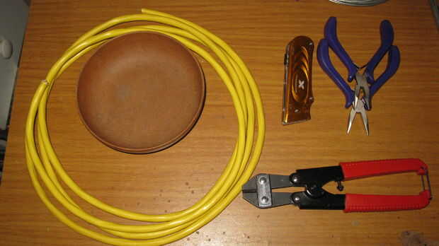 Se necesita...1. dos pinzas2. un par de cortadores de perno (similares en tamaño a los alicates)3. un cuarto de milla de cable de cerca eléctrica de calibre 14 (puede utilizar diferentes calibres, pero esto es lo que usé)4. una varilla con un diámetr