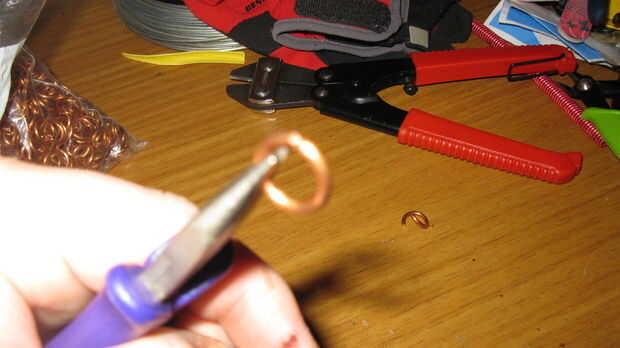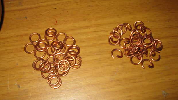 Continuación se debe tomar dos pares de alicates y abrir la mitad de los anillos y cerca de la mitad de ellos. Puedes ver lo que quiero decir en las imágenes.