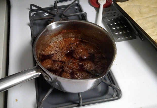 Para hacer el glaseado, he medido una taza y media de mi Amber Ale y vierte el resto en un vaso para mí. (Yo cerveza lo mismo, si te gusta mezclar el sabor en la cocina, probablemente desea cerveza demasiado, usted puede hacer combinaciones de sabores impresionante que no puede encontrar comercialmente. Es bastante fácil y educativo. De todos modos, volver a la cocina...)