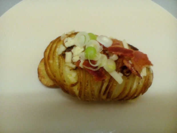 Tocino y rápido coronado patatas Hasselback (6 / 6 paso)