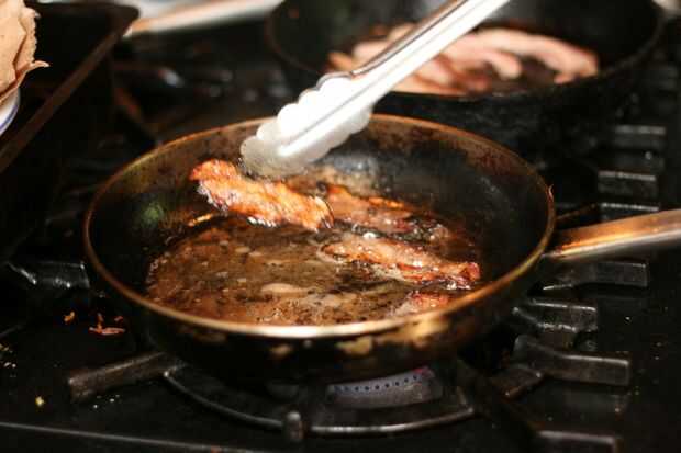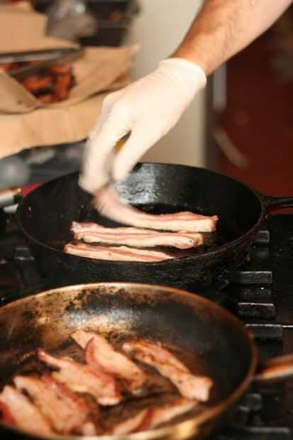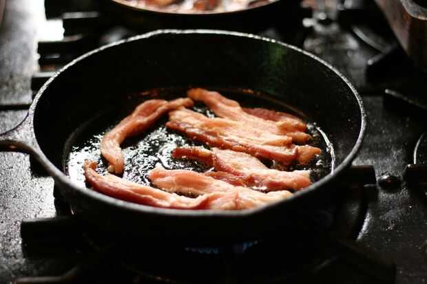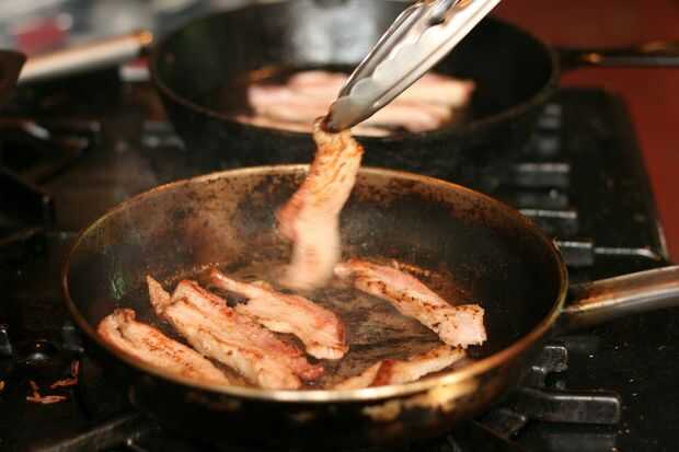 La ventaja de tocino en el horno de la hornada: todas las gotas de grasa de la panceta y sobre el pan, por lo tanto reduciendo la grasitud, calorías, grasa y tendrán tocino crujiente. Cuando se hornea el tocino, el tocino uniformemente cocina le perm