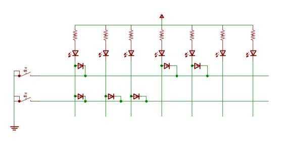 acaba de poner todos los diodos en los lugares correspondientes. Los diodos en el esquema 2 (fernbot) son sólo un ejemplo y no tienen la salida de ningún particular, sólo es un ejemplo. Esquema de Fernbot consume menos energía, pero utiliza la misma cantidad de componentes, a reorganizarse.