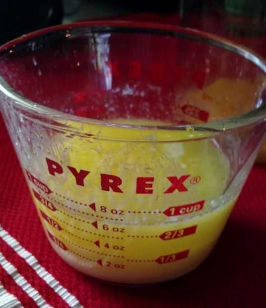 Derrita la mantequilla en una cacerola pequeña sobre fuego alto, girando constantemente, hasta que ceda la espuma. Transferencia de mantequilla en una taza de medir líquida de 1 taza. (Me derrito la mantequilla en el vaso de medida en mi horno de microondas).