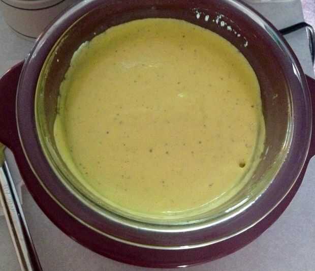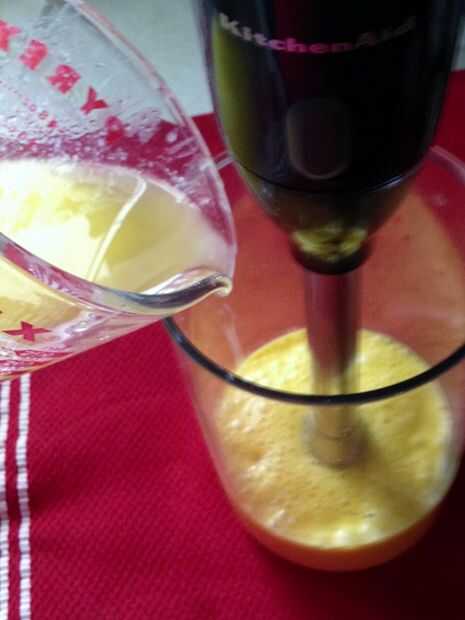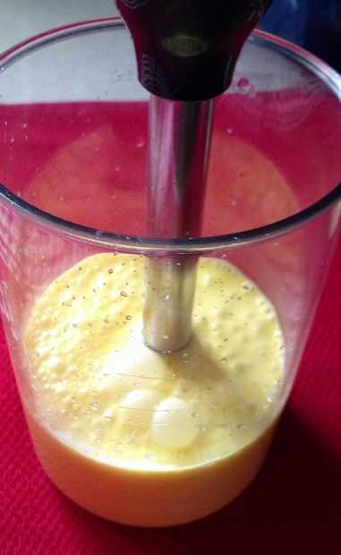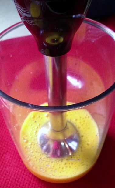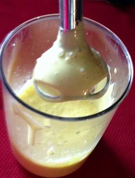 Coloque la cabeza de la licuadora en la parte inferior de la taza y enciéndala. Con la licuadora funcionando constantemente, poco a poco vierta mantequilla caliente en taza (la clave es verter poco a poco, no se Apure). Debe emulsionar con el huevo yema de huevo y jugo de limón. Continuar vertiendo hasta que se agrega manteca de todos. Salsa debe ser espesa y cremosa. Sazone al gusto con sal y una pizca de pimienta de Cayena o la salsa picante (si lo desea, también agrego una pizca de pimienta blanca o negra.)