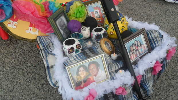 El primer año hicimos un altar gigante con su imagen y había decorado con flores y velas y brillos llamativos. Yo incluso montada encima de una placa falsa de enchiladas, su comida favorita. El año después, mientras estaba en Oklahoma, el resto de la familia fue al desfile con el mismo flotador del año anterior y algunas personas dijeron, "Pssh, vimos que el flotador el año pasado". No sólo pensar que era completamente grosero, ver cómo todo el mundo estaba allí para recordar a sus seres queridos, mi familia estaba mortificada.