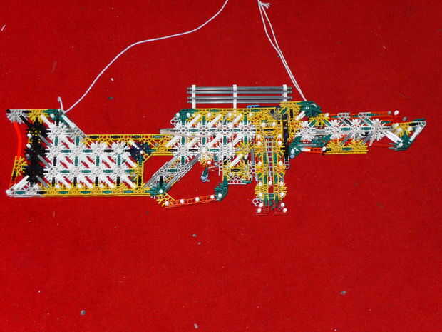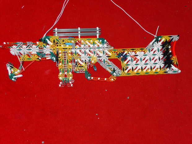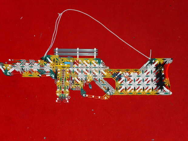 Esta es otra arma experimental fueron esta vez he puesto una cerradura de seguridad de la pistola que se encuentra en la parte delantera de la pistola. Cuando la seguridad es la parte extra pueden utilizarse como un identificador secundario. Esta pistola dispara 40-50 pies y utiliza las mismas revistas como los otros 2. la vista es razonablemente exacta siempre y cuando el objetivo está en el centro.