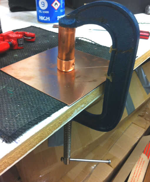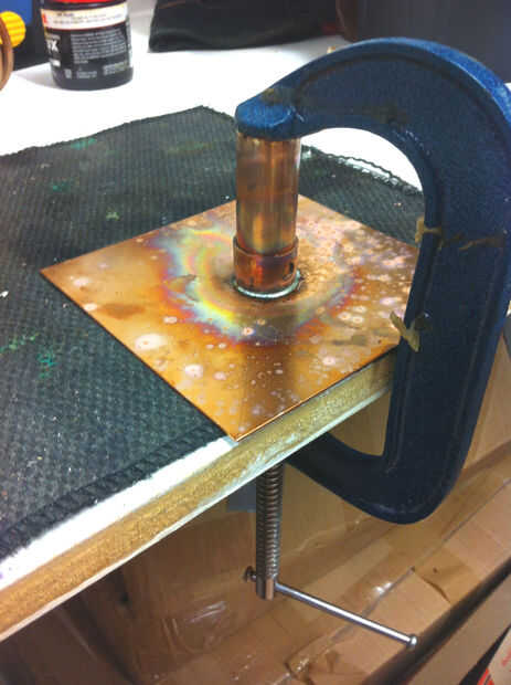 Sujeta el tapón y tubo a placa, asegurándose de que la placa era en la estera de calor y que había escorificados la tapa primero, luego soldado 2 en su lugar.
