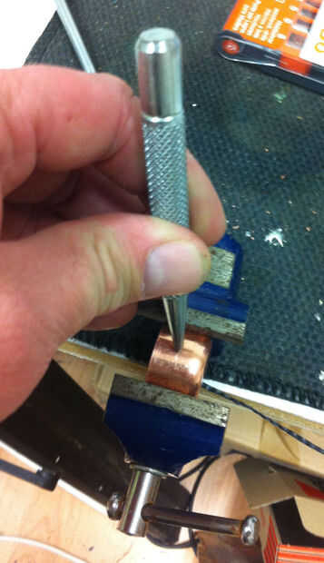 para perforar la tapa la puse en el vicio y utilizando un punzón hacerse un pequeño hueco en parar el taladro poco deslizamiento y perforó un agujero de 6mm.
