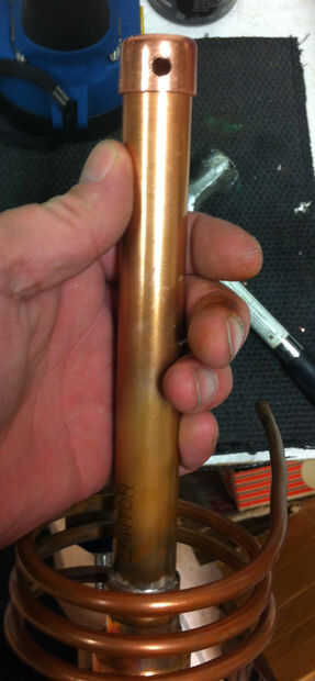 luego conseguí un cut off de tubo de 22mm y ponerlo en la tapa, esto me permita espacio para utilizar el soplete más adelante.