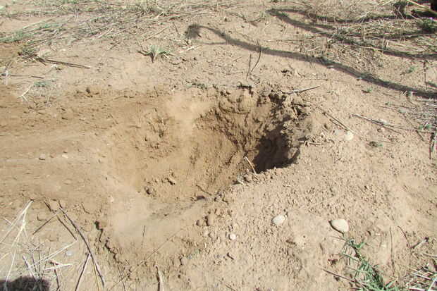 Cavar un pequeño agujero lo suficiente como para cubrir con su envoltura de plástico. Allí la superficie más expuesta está a los lados del agujero, se evaporará el agua más rápido, pero el agujero debe estar completamente cubierto por la envoltura plástica. Si el agujero es profundo que el fondo será sombra gran parte del tiempo que reduce la eficacia de la naturaleza. Asegúrese de que el agujero es profundo sólo lo suficiente como para dejar sobre dos o tres pulgadas sobre la parte superior del contenedor.